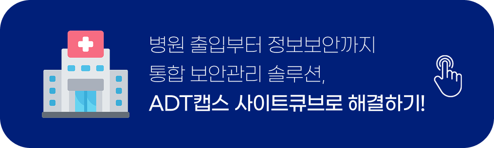 출입 및 감염 관리부터 병원 개인정보 보호까지, 환자의 생명과 안전을 위해 병원 시설관리와 보안 시스템을 함께 고려해야 합니다. ADT캡스의 통합 보안관리 솔루션 사이트큐브는 출입자 관리, 구역별 권한 설정, 실시간 상황 모니터링 등을 하나의 시스템으로 통합 운영할 수 있습니다. 지금부터 사이트큐브로 병원 보안을 관리하는 3가지 방법을 살펴보겠습니다.